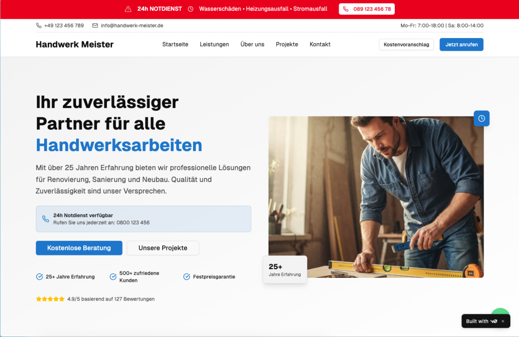 Ich brauchte einfach eine kleine, moderne Website für mein Bauunternehmen – schnell und unkompliziert. Es sieht professionell aus und funktioniert top. Ich bekomme seitdem deutlich mehr Anfragen über die Seite.